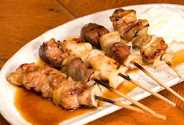 やきとり盛り合わせ¥500(とり串・すな串・かわ串・すきみ串・もつ串) |